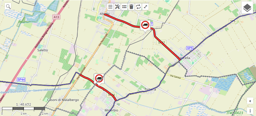 Lungo le strade provinciali SP 47 “Baricella Altedo” e SP 44 “Bassa Bolognese”, nel territorio dei Comuni di Baricella, Malalbergo e Minerbio, in occasione della campagna saccarifera e comunque dal 17/07/2024 al 01/11/2024, si dispone per tutti gli automezzi aventi massa a pieno carico superiore a 3,5 t, l’istituzione di: